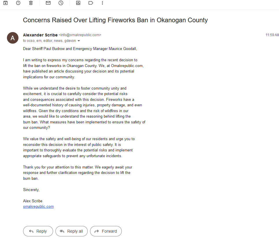 While the Sheriff’s Office insists that these precautions will keep everyone safe, critics argue that they’re nothing more than colorful Band-Aids on a potential disaster. However, it seems that the fake letter from the Sheriff’s Office and the fake letter from the Emergency Manager’s Office have given the green light, and Okanogan County is about to embark on an explosive adventure.